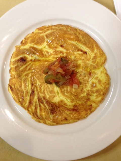 We first made a basque-style omelet. It is not a traditional rolled omelet that most Americans are used to. It is rather flat and filled with peppers and onions. To prepare this omelet, you cook it on medium heat until it has set, then with a swift flick of the wrist, you flip it over so the other side can cook evenly. You then finish it off in the oven, and top it with additional peppers and onions to serve. It was a delicious and easy way to prepare an omelet.