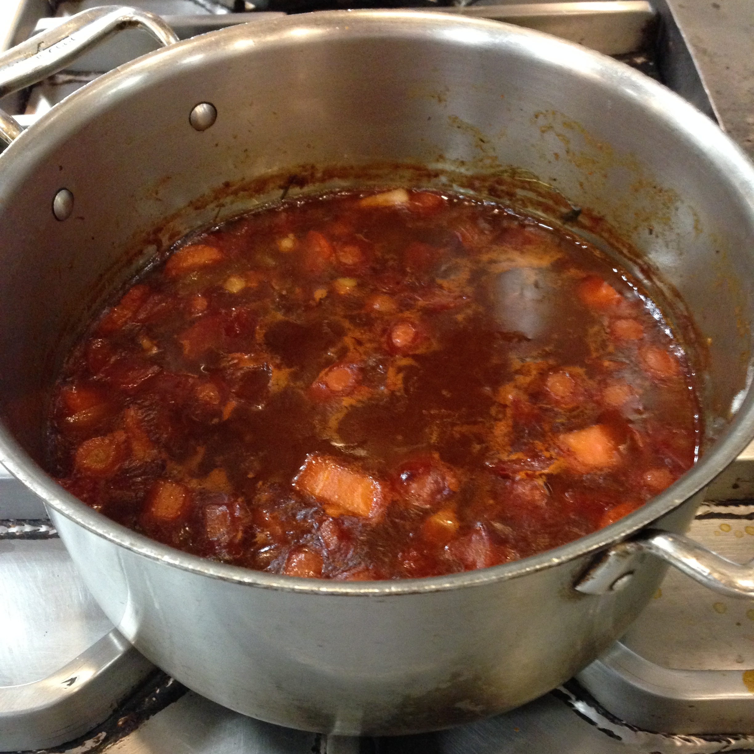 We started off making a brown veal stock together as a class. It took about 10 hours to cook before completion, but once it came out and we got to taste it the following day, it was beautiful. So rich in color and flavor from the sucs (brown bits), all I kept thinking was, “Did I really help make that?”