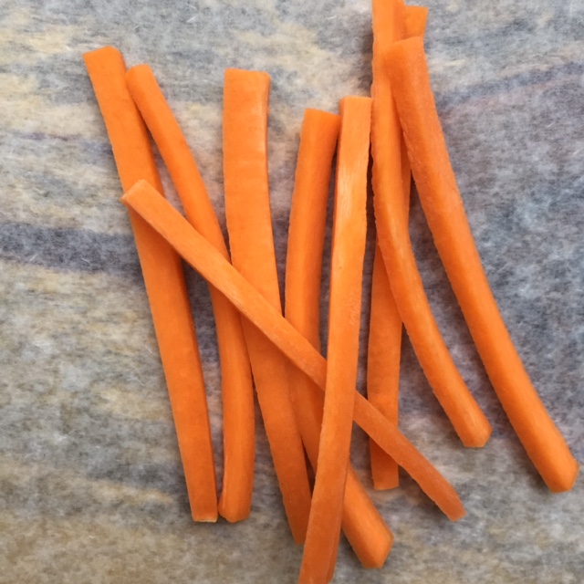 Cutting a carrot into a julienne shape is one of many shapes used in French taillage, or the method to achieve even knife cuts. It’s important to cut your veggies into uniform shapes because it’s not only aesthetically pleasing, but it also ensures even cooking. With taillage, practice makes perfect! So continue to work on your knife skills and you’ll be a pro before you know it. So here’s how to julienne a carrot.